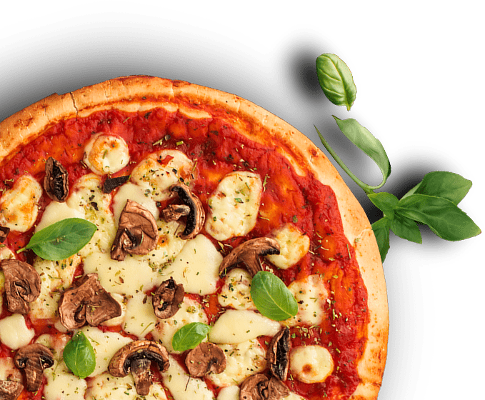 Extra-virgin olive oil, garlic, mozzarella cheese, onions, mushrooms, green olives, black olives, fresh tomatoes.